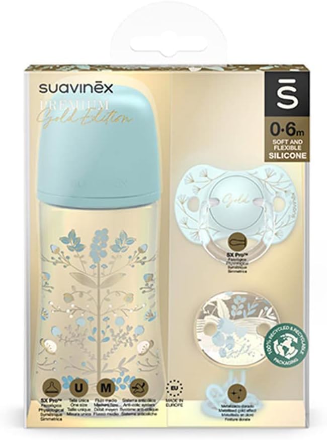 Suavinex - Gold Edition Set Nascita Azzurro 0/6M+ Confezione 3 Pezzi