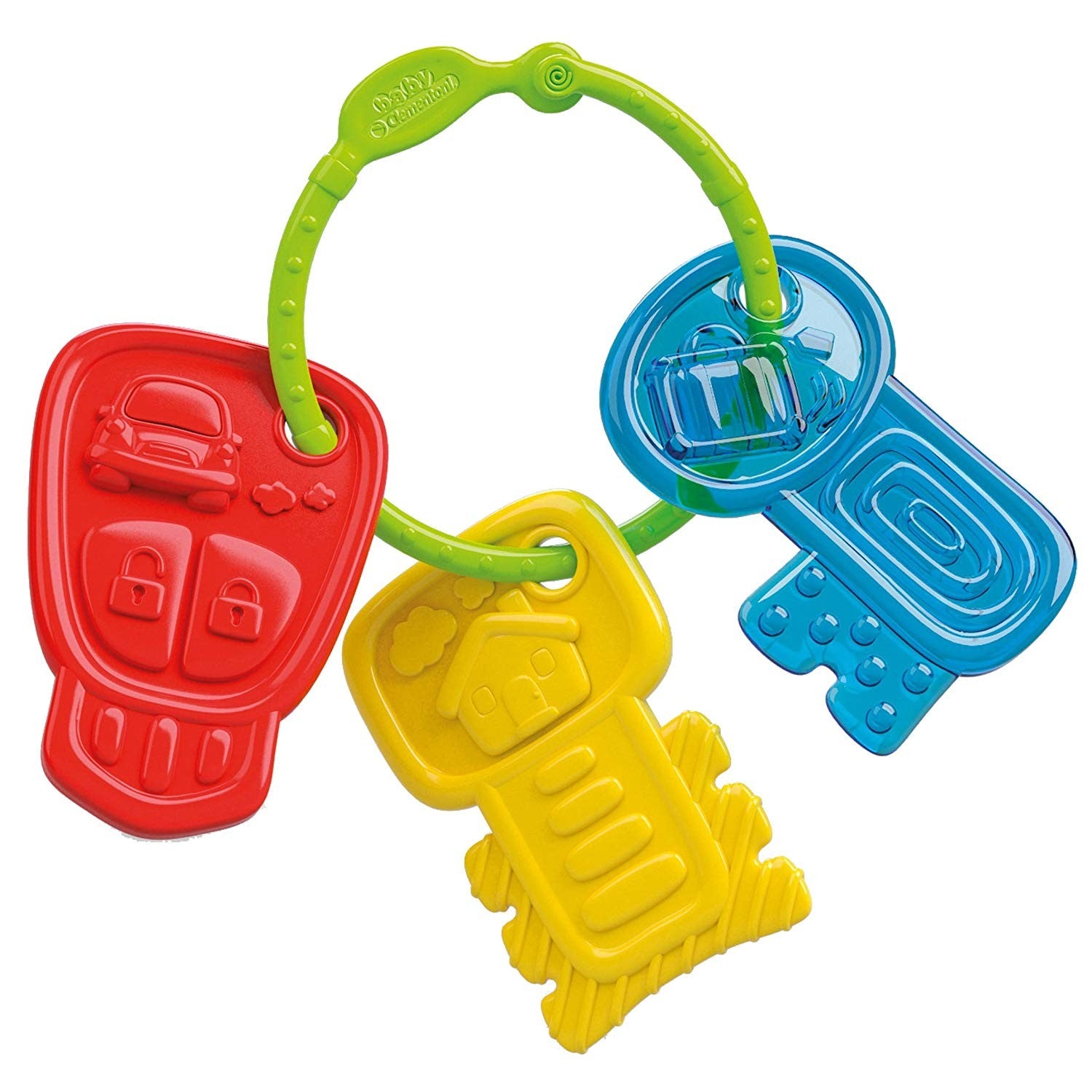 Queste colorate chiavi in morbida plastica semitrasparente sono pensate per stimolare lo sviluppo sensoriale dei bambini più piccoli.