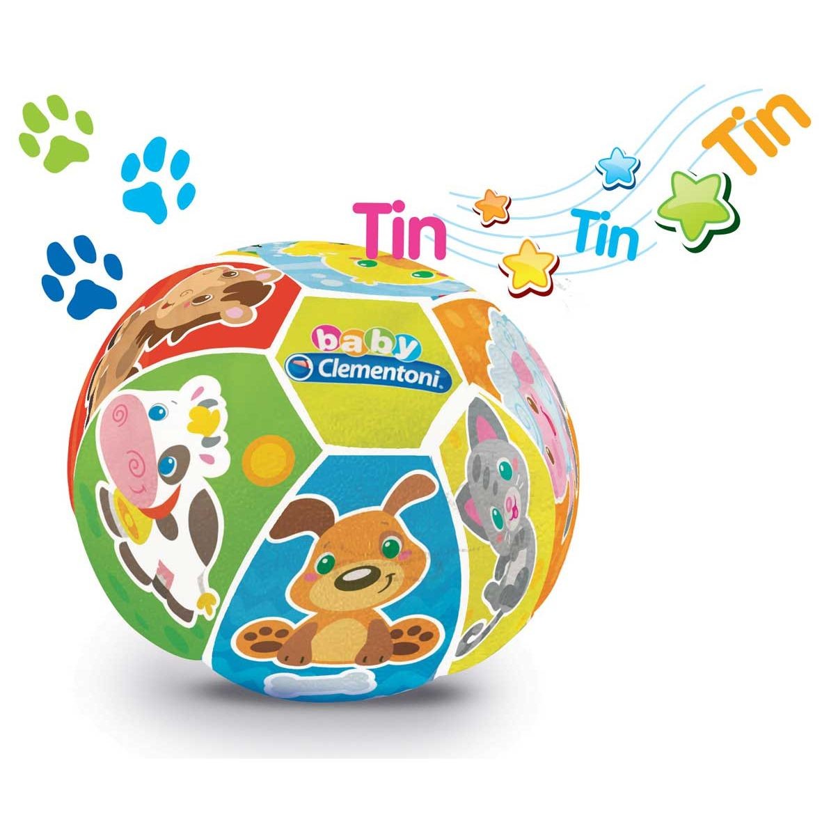 • Una palla elettronica morbida e colorata che riproduce i versi degli animali stimolando i bambini a riconoscerli.