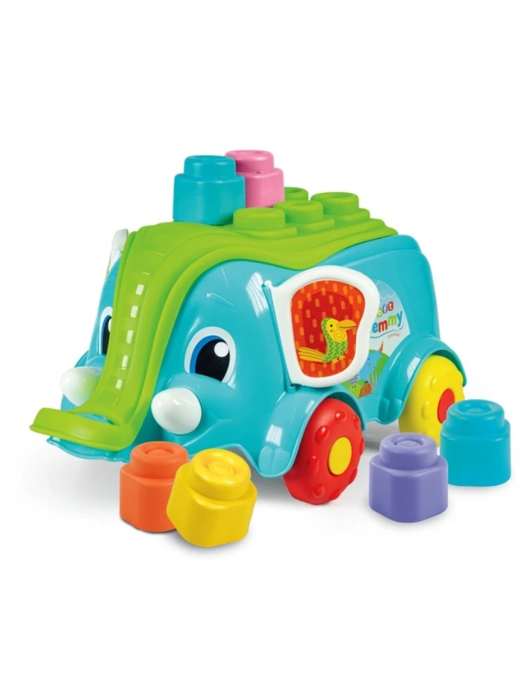 Un simpatico carretto a forma di elefantino da portare sempre con sé, per dar vita ad incredibili avventure tutte da costruire! Contiene 10 morbidi mattoncini Clemmy. Il coperchio è una comoda base di gioco, ma è anche una pratica maniglia per trainare l'elefantino. Il vano interno consente di riporre tutti i mattoncini una volta che il bambino ha finito di giocare.
