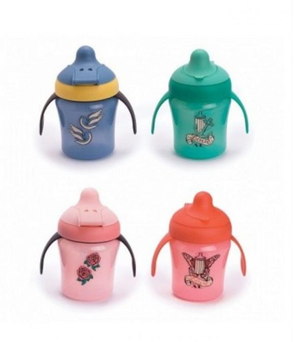 Tazza antigoccia con manici.Cappuccio protettivo: garantisce la massima igiene.Beccuccio rigido: permane inalterato durante la dentizione.