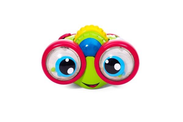 Girando la ruota gialla, muovendo gli occhi, le luci e i suoni sono attivati. Molte funzioni manuali che possono aiutare il loro bambino di coordinare meglio le prime mosse.