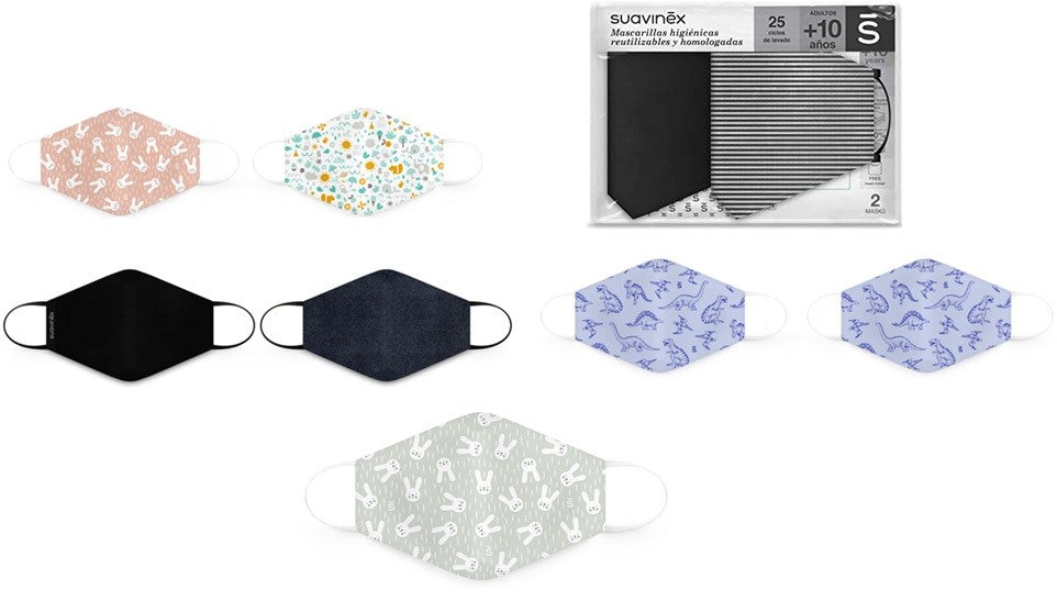 Mascherine per bambini riutilizzabili certificate e approvate. 3 strati. 25 cicli di lavaggio. 2 unità.
