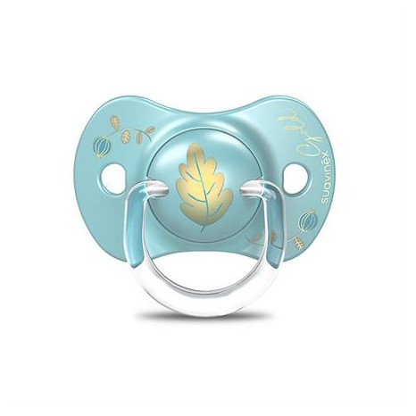 Suavinex Gold Edition Succhietto Silicone 6/18M+ Azzurro è un ciuccio dalla tettarella simmetrica, soffice e flessibile.