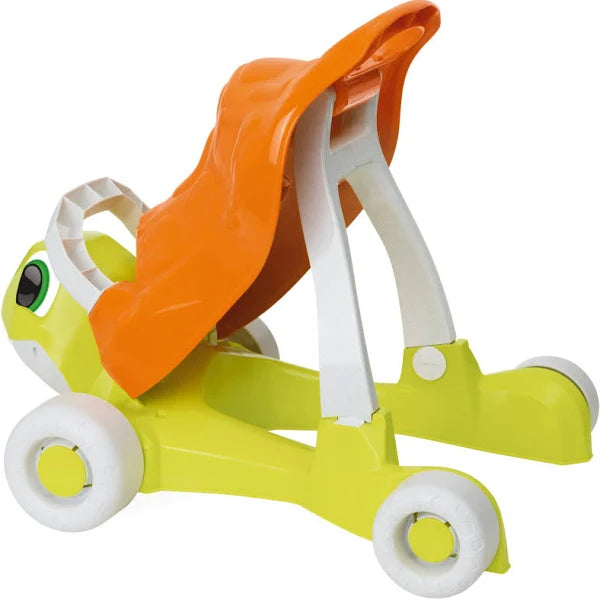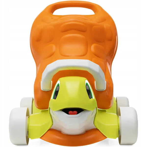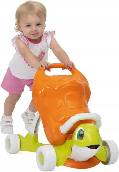 Tartaruga primi passi  ha due funzoni; a partire da 1 anno i bambini possono trasformare la piccola tartaruga in un cavalcabile, in modo da spingersi in autonomia usare le proprie gambe per muoversi.