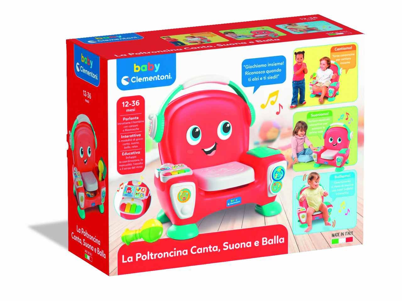 Una simpatica poltroncina multiattività e interattiva a tema musica, per far divertire i più piccoli a tutto ritmo! Per giocare, riposare, suonare e cantare, imparando le parole, numeri e colori.