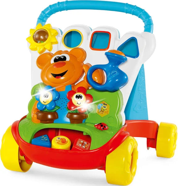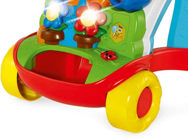 Se vedete il vostro bambino imitarvi nei lavori di giardinaggio questo è il gioco che fa per lui, un carrellino ispirato al lavoro del giardiniere; raffigurati su questo gioco simpatici fiorellini ed un orsetto con in mano un innaffiatoio.