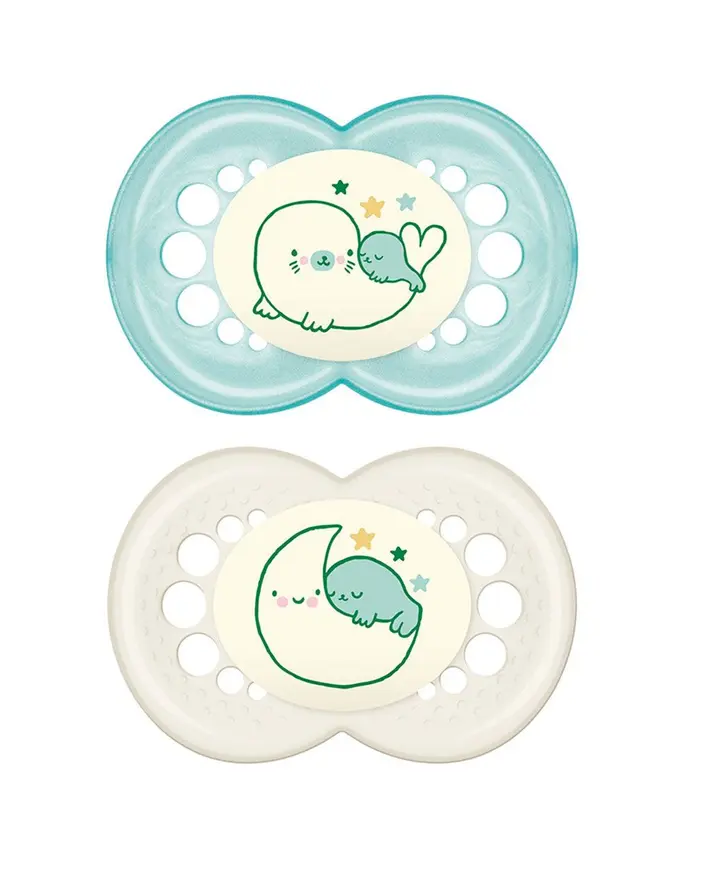 Il ciuccio MAM Original Night si illumina al buio – facile da trovare grazie al bottone luminescente!