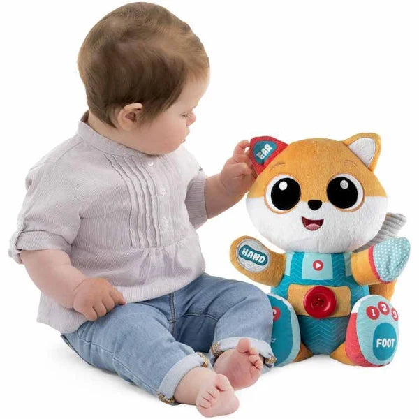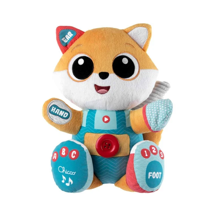 Foxie la volpe ABC e' un pupazzo evolutivo che interagisce con il tuo bambino: a partire da i 6 mesi insegna le prime parole e le parti del corpo e a partire dai 2 anni i piccoli possono iniziare a vestirsi da soli seguendo le sue divertenti indicazioni. Con 3 attivita' manuali ispirate al metodo Montessori (allccia le scarpe, infila i guanti e chiudi il bottone) per sviluppare le abilita' motorie e la coordinazione occhio-mano e 4 punti di contatto elettronici. Racconta piu' di 35 filastrocche, canzoni e melodie in italiano e inglese.