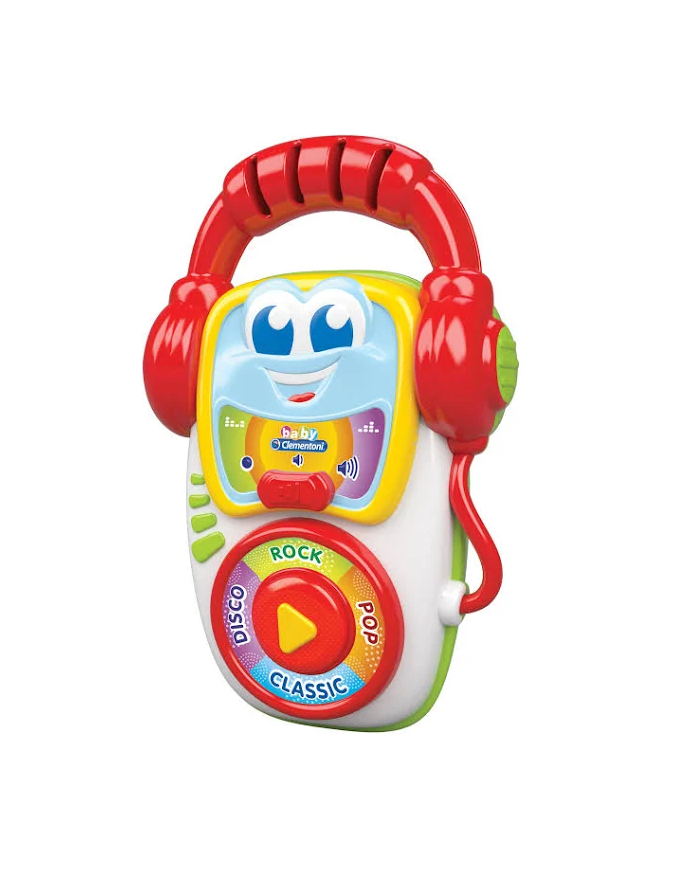 Imita la forma del lettore di mamma e papà. Sviluppa l’udito e la manualità.