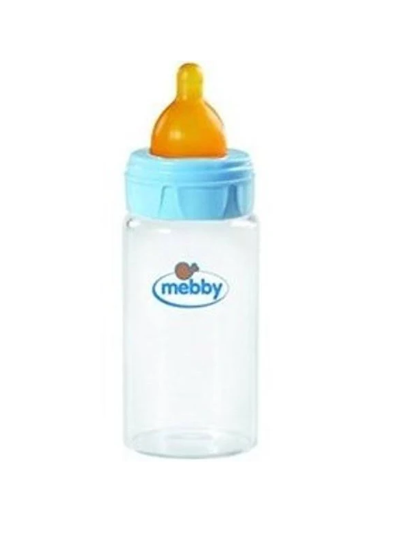 Il biberon Mebby è dotato di tettarella in lattice con valvola anticolica. Il biberon da 270ml è in vetro per mantenere a lungo la temperatura del latte. Colore: blu