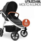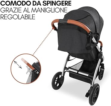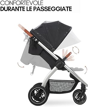 - Maniglia regolabile in altezza (ideale per genitori con differenze di taglia) funzione reclinabile (schienale e poggiapiedi regolabili)