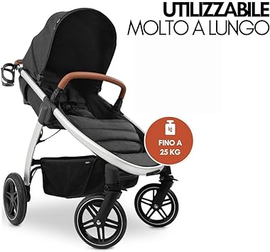 Maneggevole passeggino per la città e i terreni leggeri. Accompagna il vostro bambino, non appena è in grado di sedersi autonomamente, fino all' utilizzo del passeggino (carico massimo 25 kg). Il passeggino alla moda è dotato di molte caratteristiche innovative, con ruote a camera d'aria antiforatura e un pratico portabicchieri.