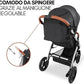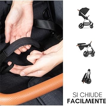 Robusto passeggino con meccanismo di chiusura con una sola mano e manubrio regolabile in altezza